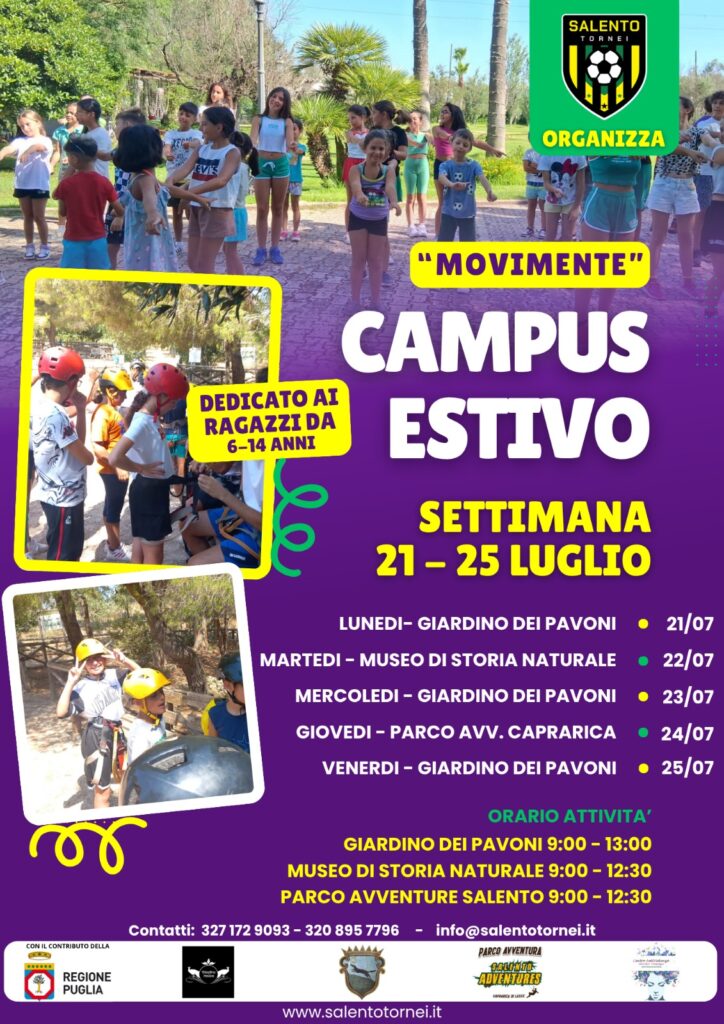 Asd Salento Tornei organizza dal 14 al 30 Luglio il Campus Estivo “MoviMente”.